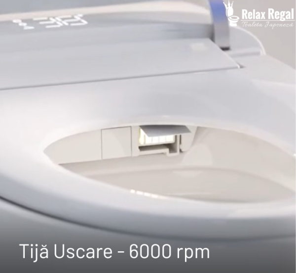 După spălare, se activează automat un sistem de uscare cu aer cald, de 6000 rotaţii pe minut, pentru o experiență igienică și confortabilă.
